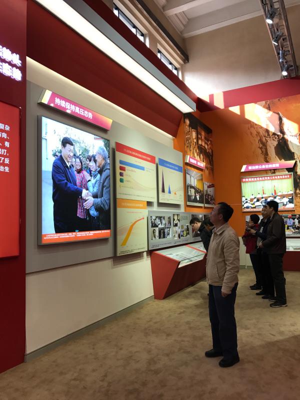 面对一组组数据,一张张图片,一件件模型,大家深切感受到党的十八大以来在以习近平同志为核心的党中央坚强领导下,我国社会经济、科技文化、生态环境、人民生活等方面所发生的翻天覆地的变化。