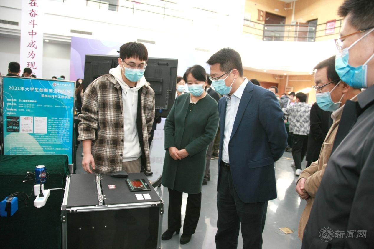 随后,缪劲翔等校领导参观展览。观看展品的过程中,缪劲翔与指导教师、学生代表亲切交流,详细了解我校创新创业工作与人才培养、大学生创新创业项目、学生就业和创业等情况,并对各有关职能部门、各学院、指导教师在项目实施过程中所付出的辛勤劳动表示感谢。缪劲翔希望,广大教师和青年学生能够以更加饱满的热情投入到创新创业活动中去,坚持立德树人,强化实践育人,以工业强国为己任,为我校深化人才培养模式改革和提升人才培养质量做出更大贡献。