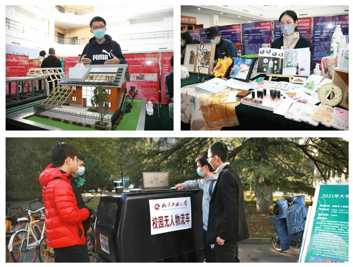 本届展览展出的70余个作品,集中呈现了我校近年来创新创业教育的成果和亮点,展品类型全面,创意与特色明显,既包括无人机模型、机器人、智能汽车等高科技作品,也有小设计、小创作和创业策划作品。